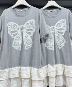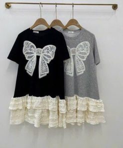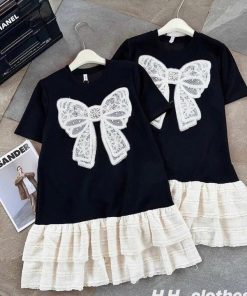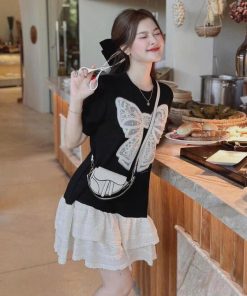 ĐẦM THUN QUẢNG CHÂU PHỐI REN LEN ĐÍNH NƠ BT92M- SAM FREESIZE < 53KG