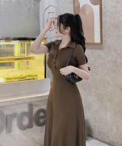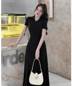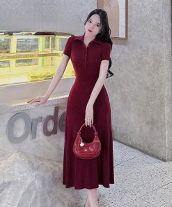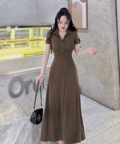 ĐẦM THUN TĂM DÁNG DÀI TAY NGẮN CỔ SƠ MI TB78FD-SAM FREESIZE < 55KG