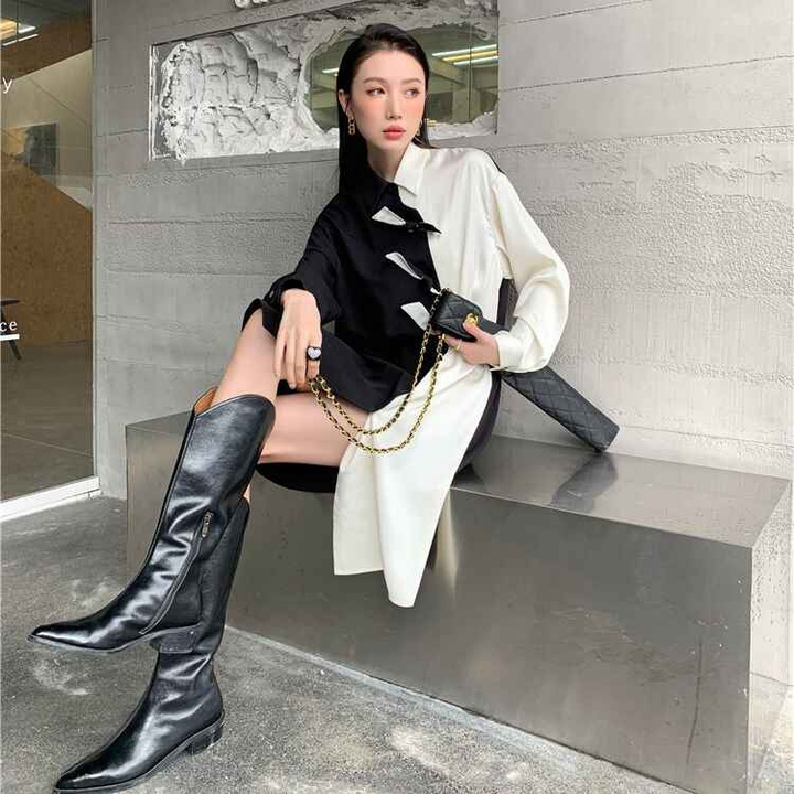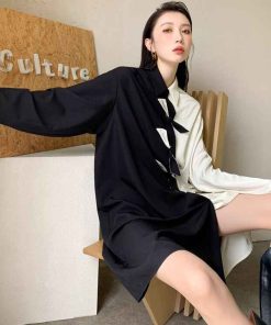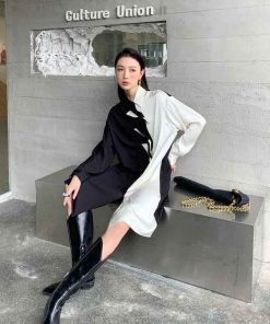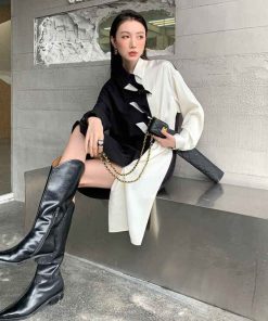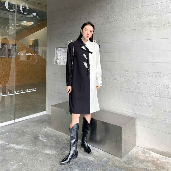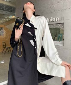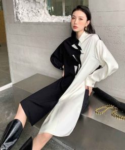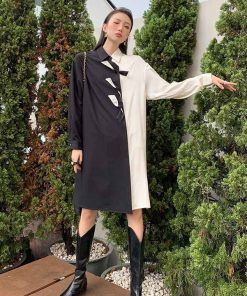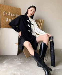 - Đầm trắng đen thắt nơ bất đối xứng với chất liệu mềm mát phá cách độc lạ. Phù hợp mặc đi chơi đi làm, đi họp,…