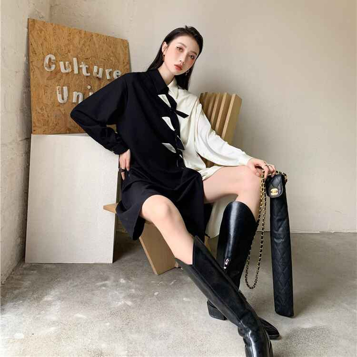 - Tên sản phẩm: Đầm Trắng Đen Thắt Nơ – Mushroom Lee