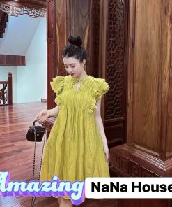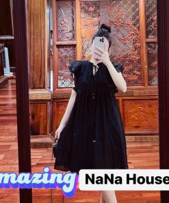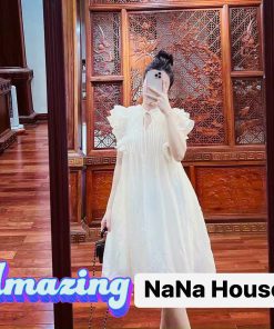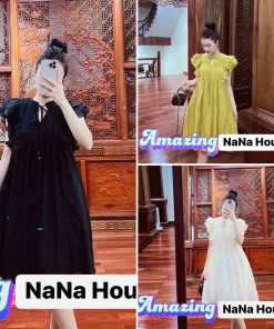 ĐẦM VÁY BẦU BABYDOLL TAY BÈO XẾP LI NGỰC BV211 – NANA FREESIZE < 65KG