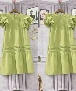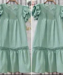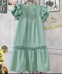 Đầm babydoll tay bèo, váy đũi gân dáng rộng cổ tròn đuôi cá công sở bầu mặc xinh
