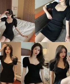 ĐẦM VÁY BODY TAY PHỒNG NHÚN NGỰC THUN BORIP UG55 – NANA FREESIZE < 53KG