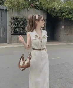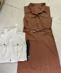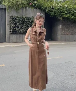 ĐẦM VÁY KAKI NỮ CỔ SƠ MI PHỐI NÚT KÈM ĐAI FORM DÀI BT960 – NANA FREESIZE < 53KG