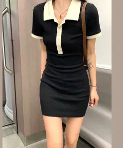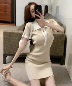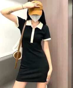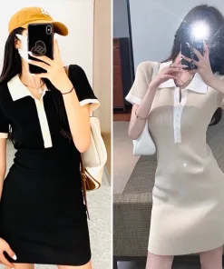 ĐẦM VÁY NỮ BODY CỔ POLO TAY NGẮN DÁNG ÔM CHẤT THUN GÂN SA01 – SAM FREESIZE < 53KG