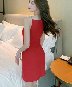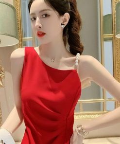 – Đầm váy nữ body dây cườm lệch vai với tone màu đỏ sáng da siêu xinh