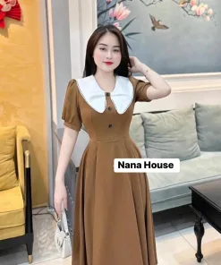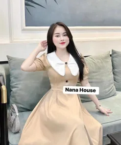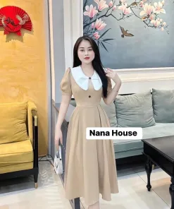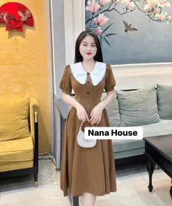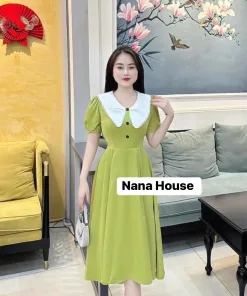 ĐẦM VÁY NỮ KATE LỤA TAY PHỒNG CỔ LÁ SEN BT654 – NANA FREESIZE < 53KG