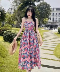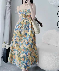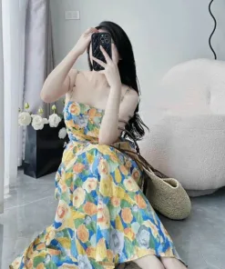 ĐẦM VÁY NỮ LỤA HOA 2 DÂY BT278 – NANA FREESIZE < 53KG