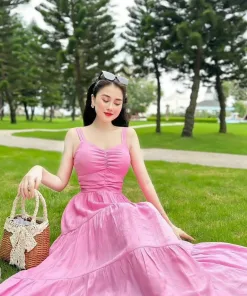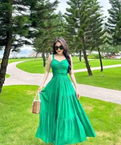 Đầm váy nữ maxi 2 dây xòe xếp tầng xinh xắn dành cho các nàng diện đi chơi, đi biển siêu xinh
