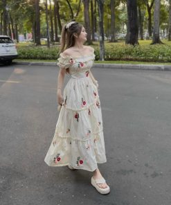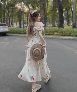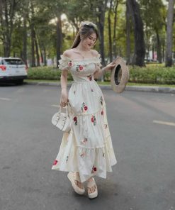 ĐẦM VÁY NỮ MAXI TRỄ VAI LỤA IN HOA SA154 – SAM FREESIZE < 53KG