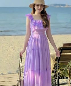 ĐẦM VÁY NỮ VOAN HOA XÒE MOCKING EO HOA TÍM DD021 – NANA FREESIZE < 55KG