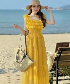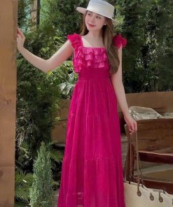 ĐẦM VÁY NỮ MAXI VIỀN XẾP BÈO (CÓ LÓT) BH959R- NANA FREESIZE < 53KG