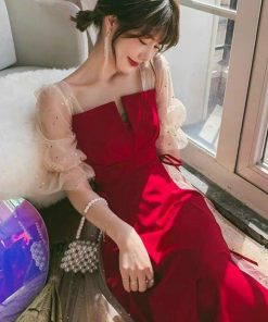 -Đầm váy nữ vphối lưới kim sa cột eo xinh xắn nhẹ nhàng dành cho các tình yêu
