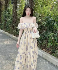 ĐẦM VÁY NỮ RỚT VAI FORM XÒE BÈO VAI CÓ MOCKING BH1158- NANA FREESIZE < 55KG