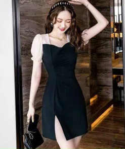 ĐẦM VÁY NỮ THUN BORIP XẺ TÀ PHỐI TAY VOAN SA580 – SAM FREESIZE < 53KG