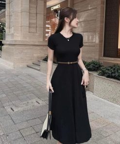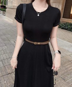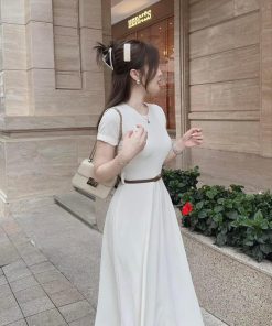 ĐẦM VÁY NỮ THUN TĂM LẠNH DÁNG DÀI KÈM DÂY NỊT BT702 – NANA FREESIZE < 55KG