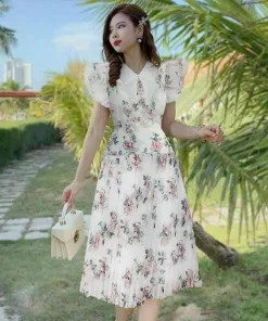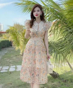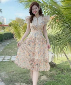 ĐẦM VÁY NỮ VOAN HOA DẬP LY PHỐI CỔ TAY CÁNH TIÊN SH1207- SAM FREESIZE < 55KG