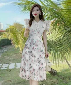 ĐẦM VÁY NỮ LỤA HOA TAY PHỒNG ST688 – SAM FREESZIE < 55KG