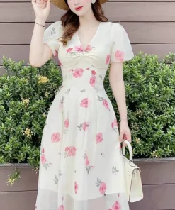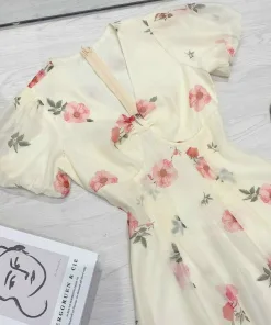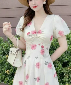 ĐẦM VÁY NỮ VOAN TAY PHỒNG CỔ CHỮ V NHÚN NGỰC UG501 – NANA FREESIZE < 55KG