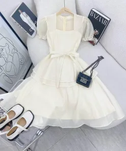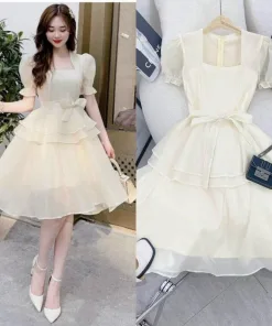 ĐẦM VÁY NỮ VOAN TAY PHỒNG FORM XÒE BT597 – NANA FREESIZE < 53KG