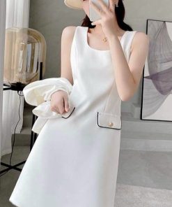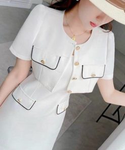 Tên sản phẩm: Đầm viền túi kèm áo khoát cài nút thật V189 – CLOUDY DRESS