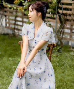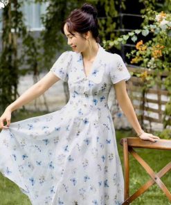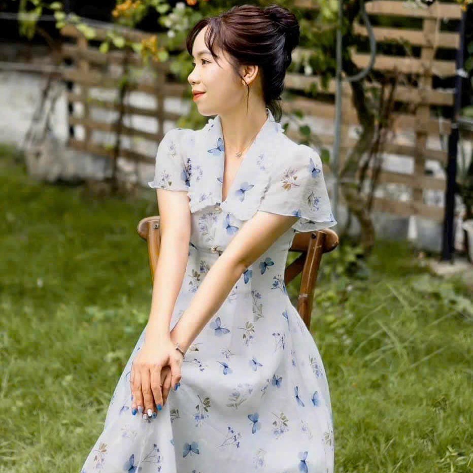 ĐẦM VOAN HOA CỔ LÁ ĐÍNH CƯỜM DD011 – NANA FREESIZE < 55KG