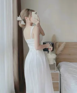 - Kiểu dáng đầm voan dài có mút ngực tạo phong cách trẻ trung, năng động.