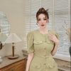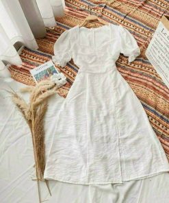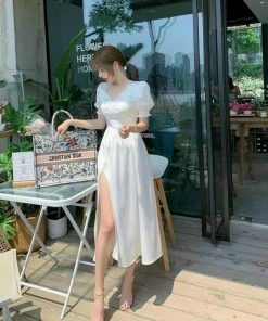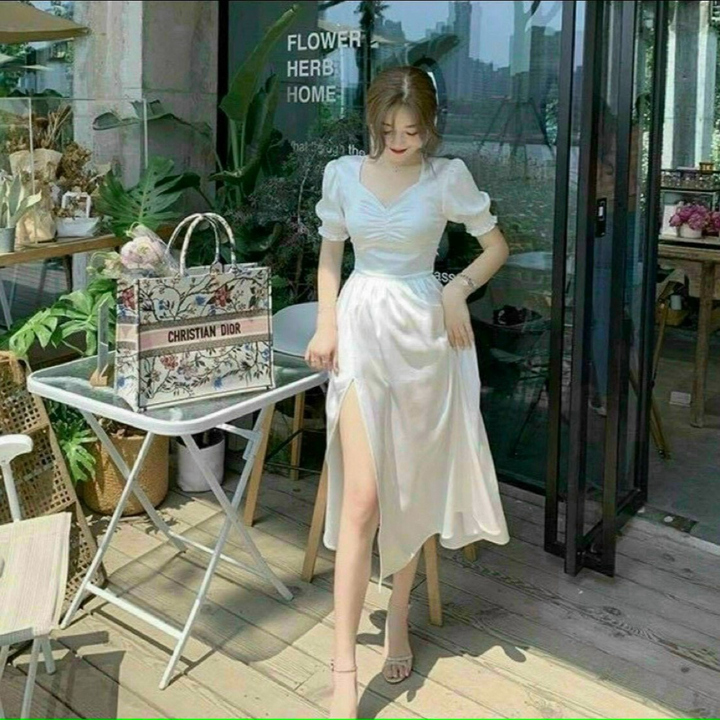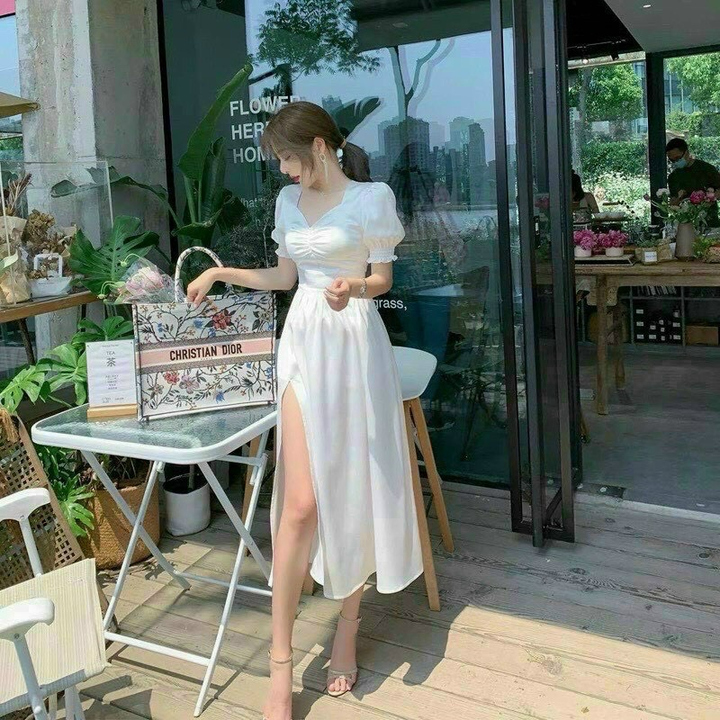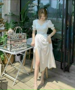Tên sản phẩm: Đầm xẻ tà tay phồng chất đũi nhăn V182 – CLOUDY DRESS