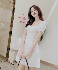Tên sản phẩm: Đầm xòe ngắn tay bồng trơn chất kate màu đen V103 – CLOUDY DRESS