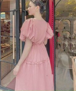 Tên sản phẩm: Đầm xòe ôm eo tay bồng sang chảnh màu hồng V68 – CLOUDY DRESS
