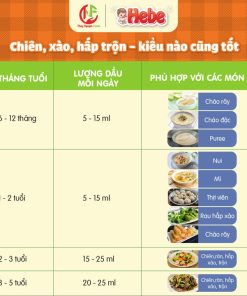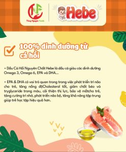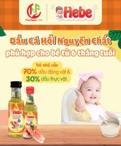 Dầu Cá Hồi Nguyên Chất Hebe từ 100% Nguyên Chất, cung cấp các dưỡng chất thiết yếu cho con như Omega 3, Omega 6, EPA & DHA trong hành trình ăn dặm.