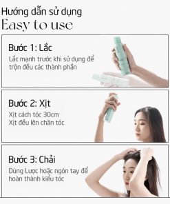Bước 2: Xịt vào chân tóc và xịt cách tóc 20-30cm.