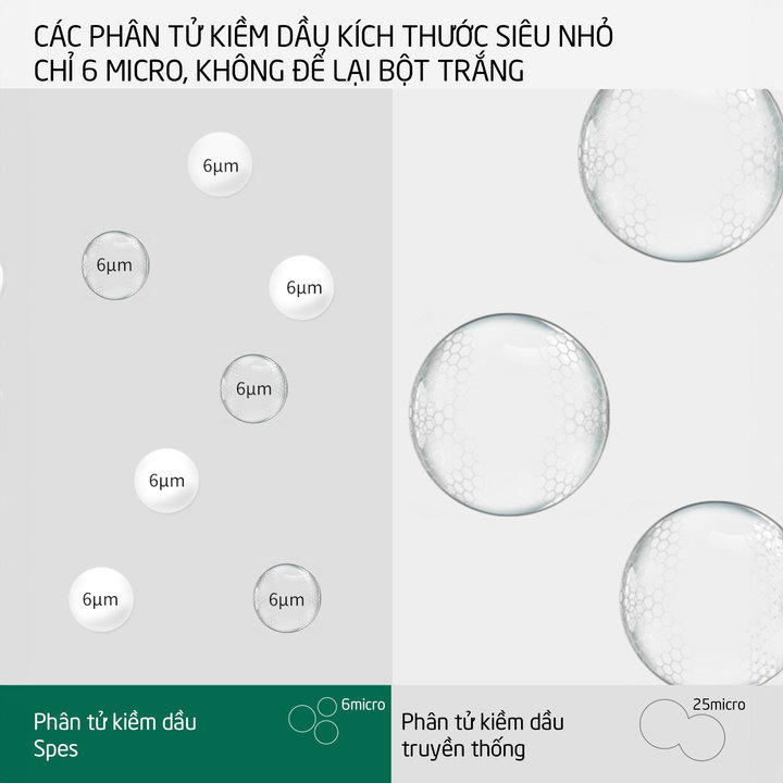 Các phân tử kiềm dầu kích thước siêu nhỏ chỉ 6 micro giúp hút dầu hiệu quả, không để lại cặn bột trắng khi xịt lên tóc.