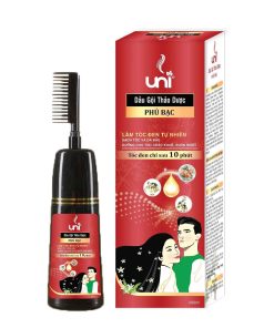 - Uni Dầu Gội Thảo Dược Phủ Bạc là sản phẩm cao cấp được nghiên cứu bào chế dựa trên sự kết hợp giữa công thức cổ truyền với công nghệ hiện đại. Với chiết xuất của các loại thảo dược quý như Chiết xuất Nha Đam, Chiết xuất Lá Móng, Chiết xuất Ô Liu, Chiết xuất Bưởi, Chiết xuất Hà Thủ Ô, Chiết xuất Trà Xanh…cùng mùi hương bưởi đặc trưng của người Việt, không những giúp bạn có mái tóc đen tuyền óng mượt và cung cấp dưỡng chất cần thiết để nuôi dưỡng sâu trong chân tóc và làm chậm quá trình bạc tóc.