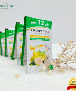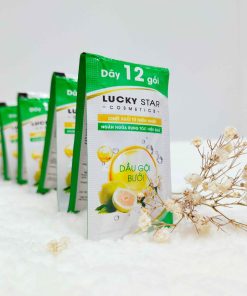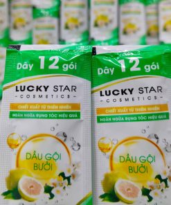 + Dầu gội bưởi Lucky Star mang hương hoa bưởi và vỏ bưởi tươi thiên nhiên, sản phẩm chứa các dưỡng chất có lợi cho tóc