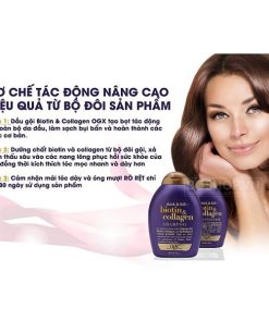 - Collagen có chứa trong dầu gội biotin collagen không những giúp tóc chắc khỏe mà còn giúp tăng độ dày của tóc, cho bạn mái tóc bồng bềnh, dày mượt quyến rũ