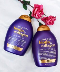 - Dầu gội và xả thick & full biotin collagen bổ sung Biotin và Collagen giúp làm dày và ngăn rụng tóc, hỗ trợ mọc tóc