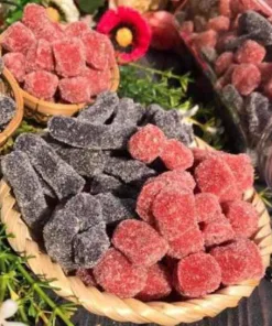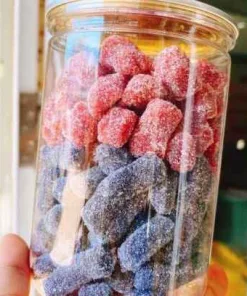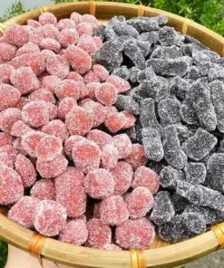 - Vị ngọt thanh, chua nhẹ ngào bên ngoài lớp đường cát ăn viên kẹo dẻo dẻo, sực sực dâu tây & kẹo dâu tằm được chế biến từ những trái dâu tây chín mọng, có màu sắc bắt mắt.