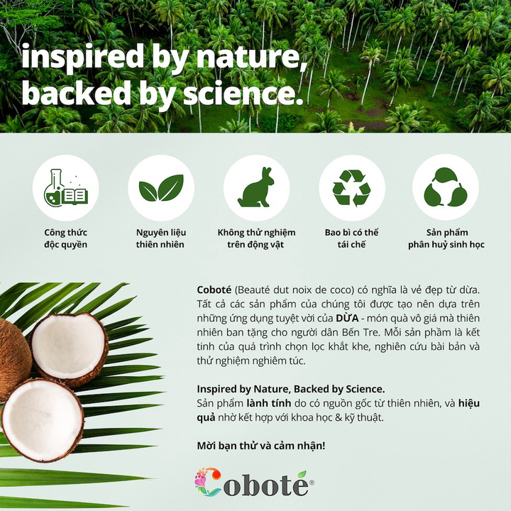 – Dầu dừa tươi™: Dầu dừa tươi™ chiết xuất từ 100% cơm dừa tươi giàu Lauric & Capric acid giúp khóa ẩm và lấy lại trạng thái cân bằng, cho da ẩm mượt;