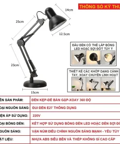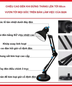 Đèn được nhà sản xuất thiết kế thông minh với các khớp xoay linh hoạt, dễ điều chỉnh cho mọi không gian học tập.