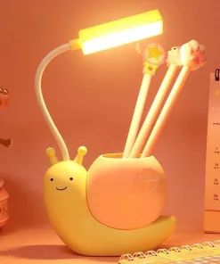 Nhờ những đặc điểm ưu việt này, đèn học để bàn tích điện hình ốc sên được đông đảo khách hàng săn đón, lựa chọn. Trên đèn có chiếc hộp đựng bút nhỏ xinh giúp bạn bảo quản các đồ dùng học tập của mình và sử dụng vô cùng tiện lợi.