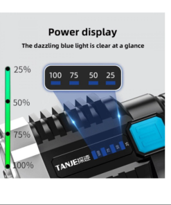 - Pin có thể sạc lại dung lượng lớn tích hợp, nhiều phương pháp sạc USB, phạm vi dài, tuổi thọ pin dài, độ sáng cao, màn hình hiển thị điện thông minh, đèn bên sáng, thích hợp cho nguồn điện khẩn cấp khi cúp điện tại nhà.