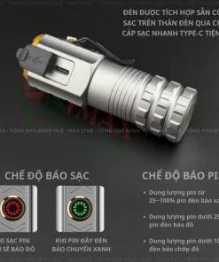 ✔ Thời gian soi sáng ở chế độ sáng mạnh được ~1,5h, độ sáng nhẹ nhất ~5h