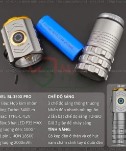 ✔ Đèn pin cầm tay siêu sáng X-BALOG 350X PRO soi siêu tỏa 50 mét, soi xa ~200 mét, chống nước tiêu chuẩn IPX7