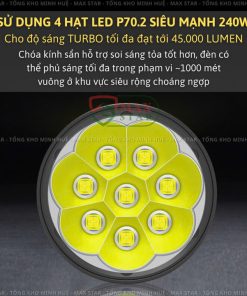 ✔ SỬ DỤNG 8 HẠT LED P70.2 SIÊU MẠNH 240W, Cho độ sáng TURBO tối đa lên tới 45.000 LUMEN