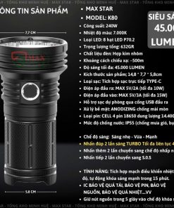 Đèn pin cầm tay siêu sáng 45000 lumen MAX STAR K80 công suất 240W cao cấp chính hãng dung lượng pin 14400mAh GD218