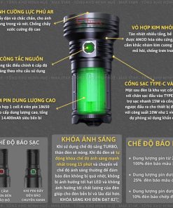 ✔ TÍNH NĂNG: Tích hợp mạch điều khiển nhiệt độ, tự động ngắt khi quá nhiệt. Thay đổi sang ánh sáng thấp và mở khóa sau 15 phút. IC BẢO VỆ QUÁ TẢI, BẢO VỆ PIN, BẢO VỆ NGUỒN, BẢO VỆ QUÁ NHIỆT….VV