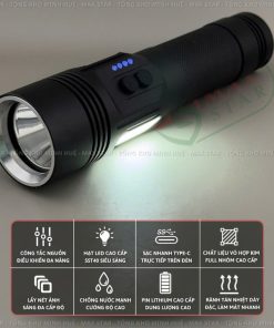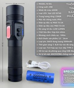Đèn pin cầm tay siêu sáng cao cấp MAX STAR N001 LED SST40 chính hãng pin trâu sạc ngược chân cáp sạc nhanh TYPEC GD225