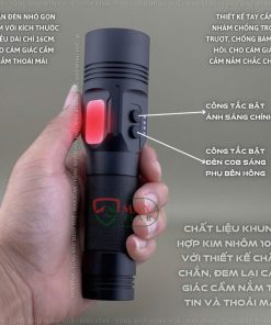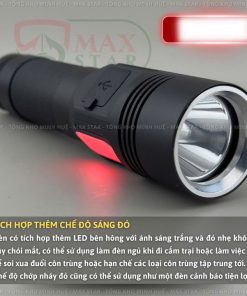 ✔ Tích hợp thêm chế độ sáng đỏ: đèn có tích hợp thêm led bên hông với ánh sáng trắng và đỏ nhẹ không gây chói mắt, có thể sử dụng làm đèn ngủ khi đi cắm trại hoặc làm việc và để soi xua đuổi côn trùng hoặc hạn chế các loại côn trùng tập trung tới, chế độ chớp nháy đỏ cũng có thể sử dụng như một đèn cảnh báo tiện lợi !