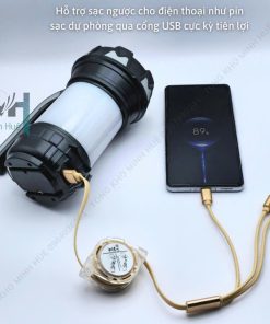 ✔ Đèn tích hợp chức năng sạc ngược cho điện thoại cực kỳ thuận tiện cho những ai sử đụng đèn để đem đi cắm trại hoặc mạo hiểm dài ngày.